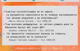 Nos hace especial ilusión convocaros a esta sesión en que nuestras compañeras, tituladas recientemente, mostrarán sus trabajos final de grado. Una muestra de hacia dónde podría conducirse la profesión, una importante señal de compromiso y [...]