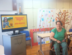 Posteriormente tuvo lugar uno de los momentos más emotivos de la tarde, al entregar el reconocimiento a la trayectoria profesional a Ana Serena, Educadora Social miembro de la primera junta del colegio. En la presentación llevada a cabo por Gema L. Lajusticia, anterior presidenta del colegio, se destacó su amplia experiencia profesional en el acompañamiento en procesos vitales de muchas personas en diferentes proyectos así como su perfil de persona activa en la reivindicación de los derechos sociales.