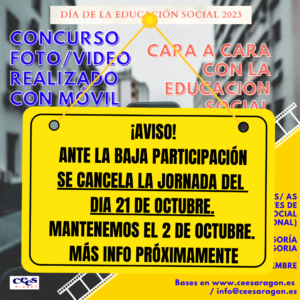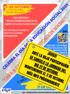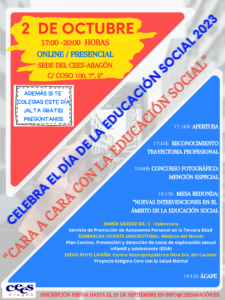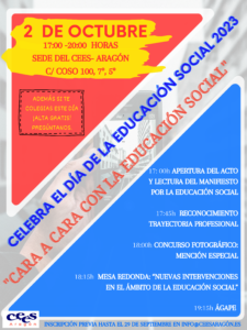 Desde el CEES-Aragón queremos invitarte a formar parte de le celebración del día de la Educación Social, que este año como novedad vamos a organizar en dos fechas: el 2 y el 21 de octubre.