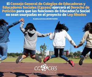 El Consejo General de Colegios de Educadoras y Educadores Sociales (CGCEES) ha emitido un comunicado anunciando que ejercerá el Derecho de Petición recogido en el Artículo 29 de la Constitución, para que sus funciones no sean usurpadas ya que el coordinador o coordinadora de bienestar y protección definido por la ley de Protección a la Infancia y a la Adolescencia es claramente un educador/a social.