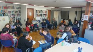 El pasado lunes 13 de Febrero, un grupo de Educadoras Sociales participaron en la formación “La práctica profesional de lxs Educadorxs Sociales en Comarcas” organizada por la vocalía de Comarcas del Cees-Aragón y con dinamización a cargo de Atelier de Ideas. La jornada sirvió para concretar acciones a desarrollar y reivindicar las necesidades de estxs profesionales.