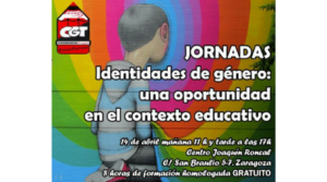 Desde Chrysallis nos hace llegar esta propuesta de formación organizada por CGT Enseñanza sobre Identidades de género, centrada en el contexto educativo. La jornada es gratuita, homologada y reconocida con 8 horas de formación y pretende dar a conocer los conceptos teóricos relacionados con las identidades de género, la diversidad afectiva sexual y familiar, así como sensibilizar al sobre la realidad personal, social, educativa y familiar de las personas transgénero.