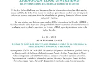 Bajo el lema Zaragoza elige diversidad, se desarrollarán diversos actos organizados por el Ayuntamiento de la ciudad. En la imagen adjunta puedes ver el programa con detalle.