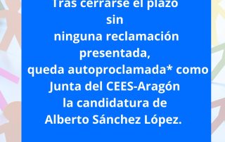 Según procedimiento electoral y calendario correspondiente, os anunciamos la proclamación de una nueva Junta de Gobierno en el CEES-ARAGÓN para los próximos cuatro años. Agradecer a todos los integrantes de Juntas anteriores y de ésta, [...]