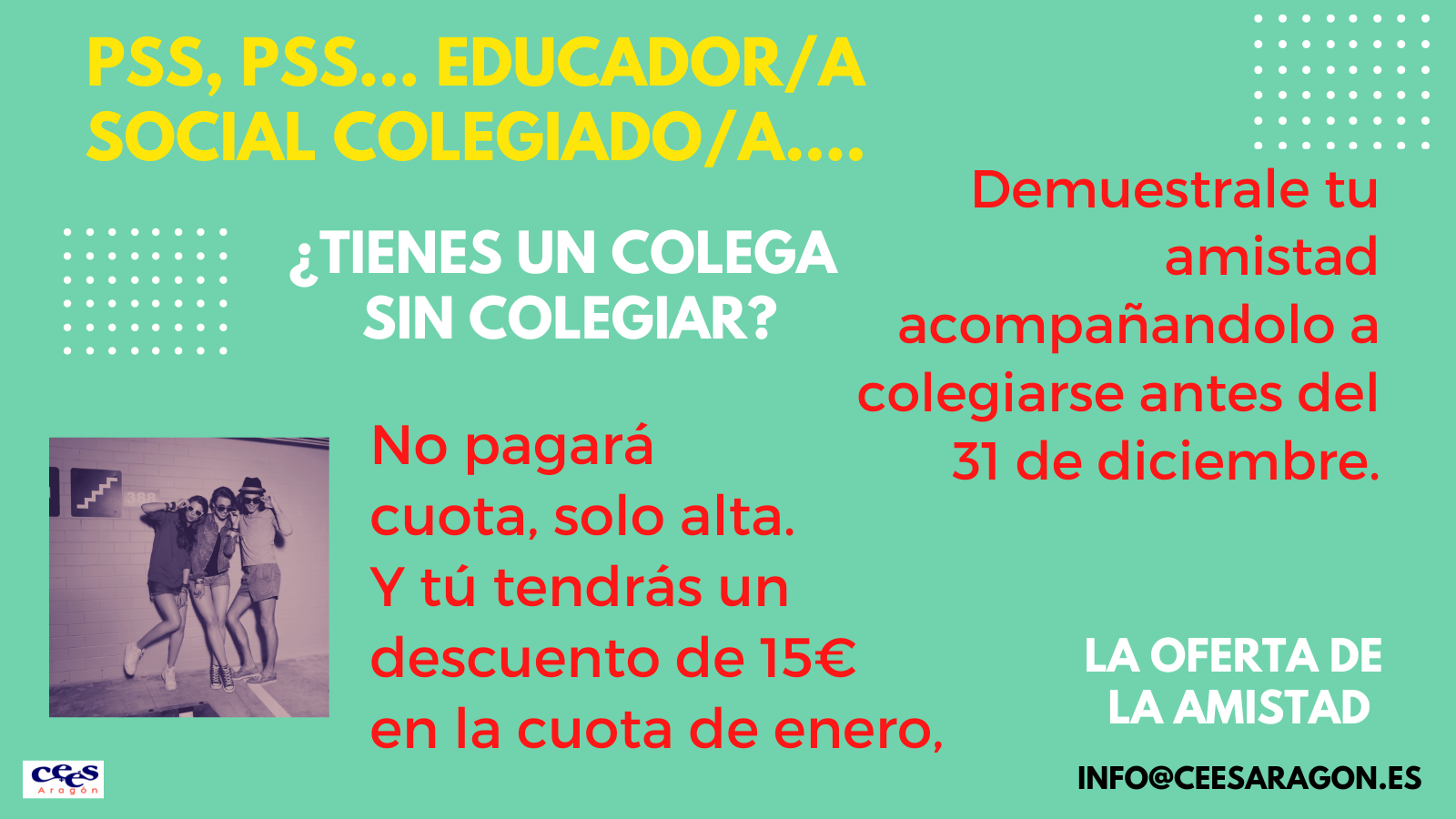 Este año la Educación Social tiene una cita importantísima en nuestra comunidad. Para celebrar que Aragón es la sede del VIII Congreso Estatal y para facilitar que ningún profesional de nuestra comunidad se pierda este evento, lanzamos esta promoción, con la que puedes obtener tu alta en nuestro Colegio Profesional gratis.