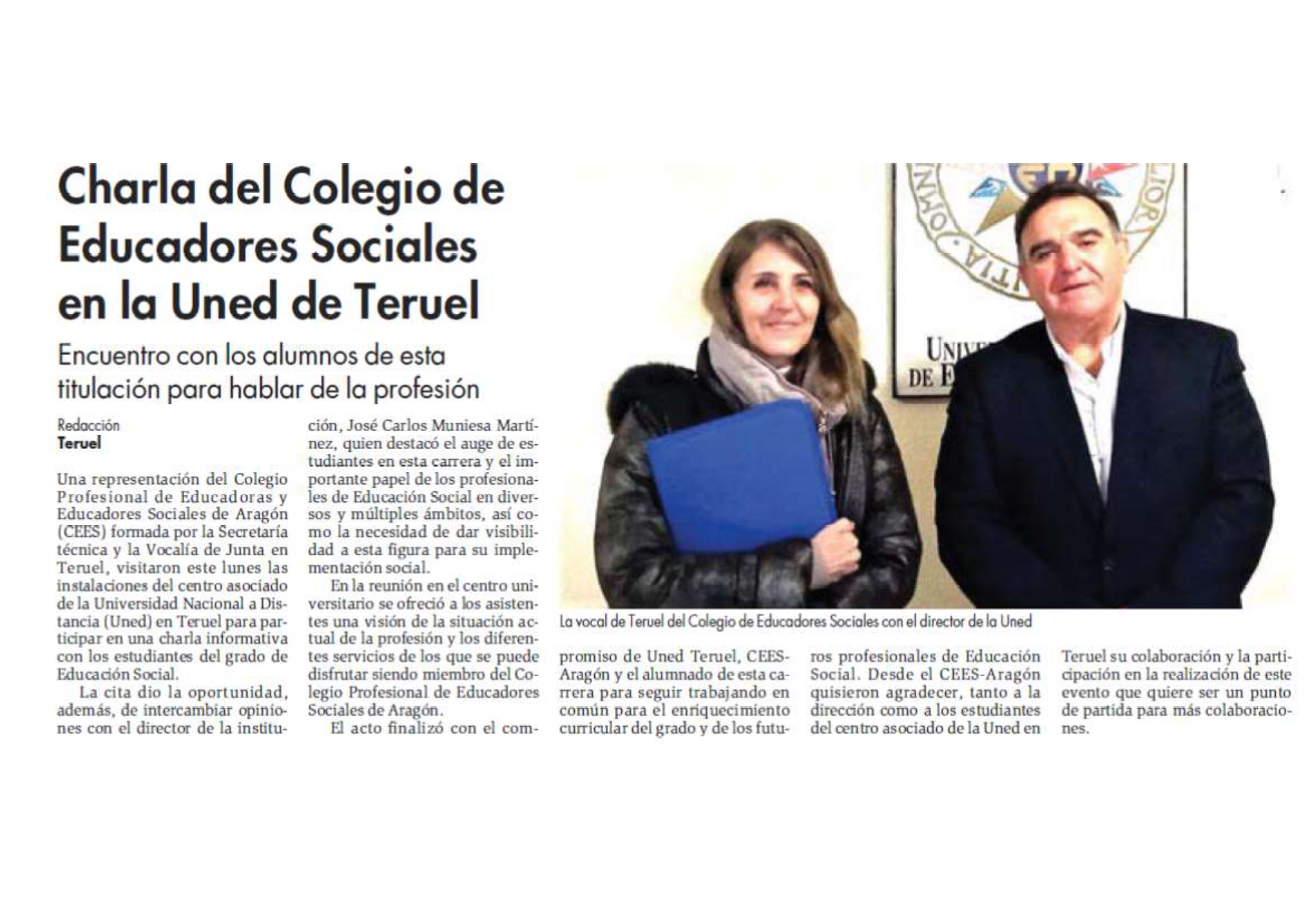 DIARIO DE TERUEL: CHARLA DEL COLEGIO DE EDUCADORES SOCIALES EN LA UNED DE TERUEL